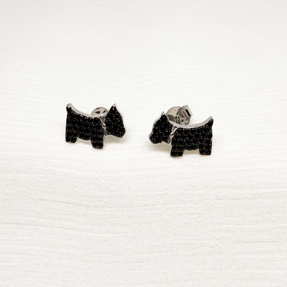 Pendientes de plata de ley con forma de perro con circonitas negras
